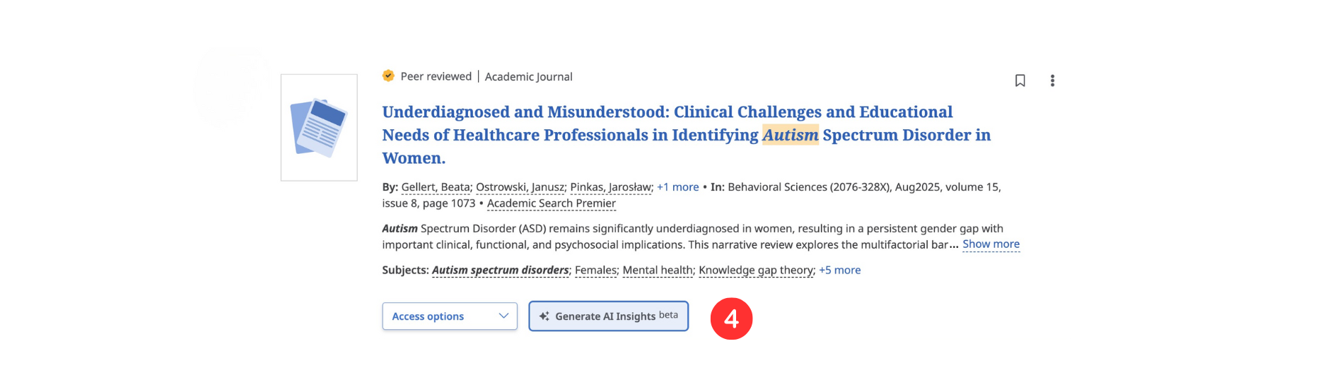 - When you’re looking at a research article, your library database might offer an option like “Generate AI Insights.” This is an incredible tool that uses artificial intelligence to quickly analyze the article for you.